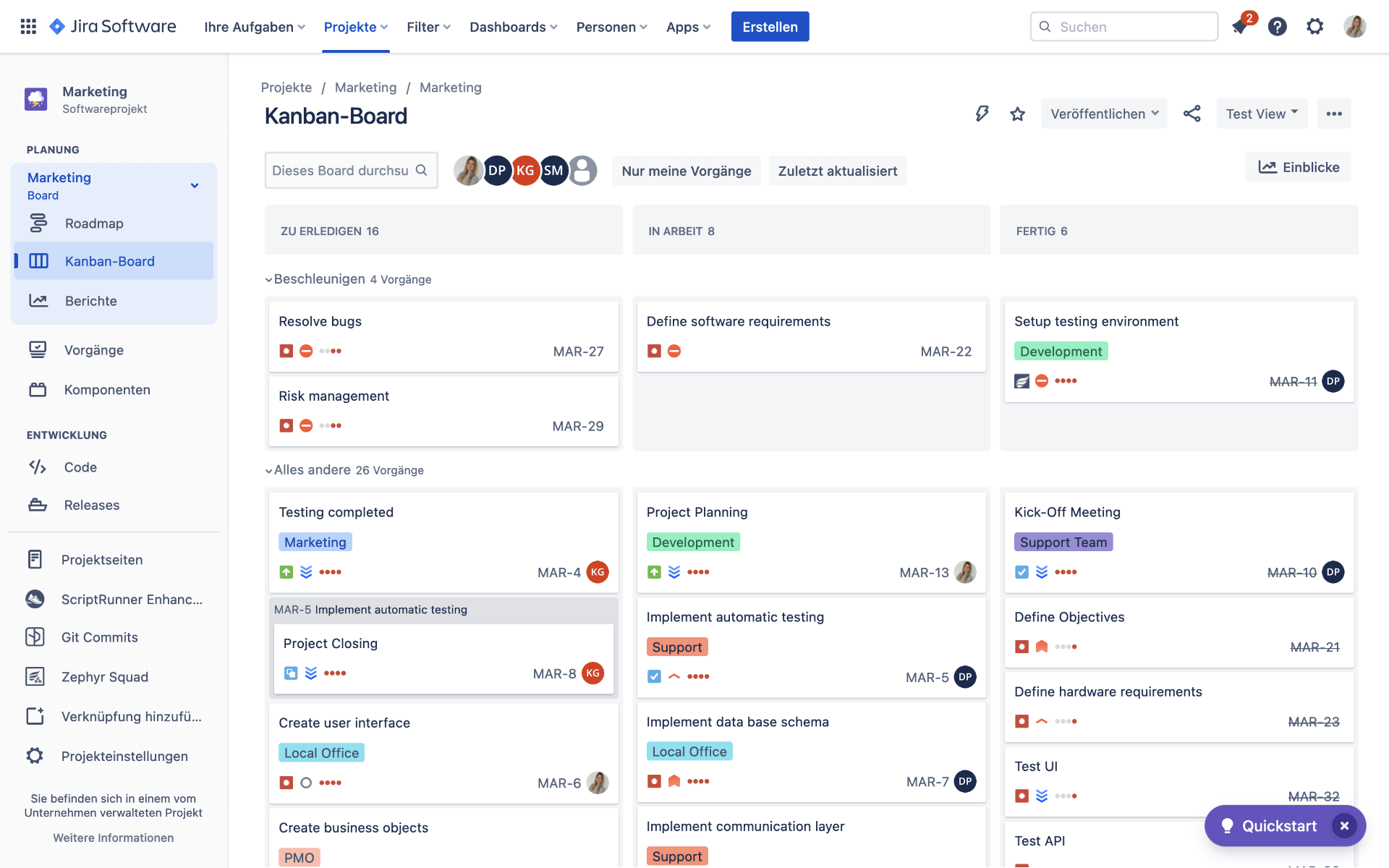 Während Sie das Projekt im Detail planen, können Entwickler und Support-Ingenieure wie gewohnt an Ad-hoc- und geplanten Jira-Projekten weiterarbeiten.