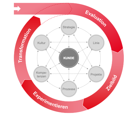 Die agilen Ansätze der Organisationsentwicklung und der Prozessoptimierung finden hier Anwendung. Ausprobieren, lernen und dann umsetzen, um dann wieder zu lernen... Das scheint der erfolgreichste Ansatz zu sein. -