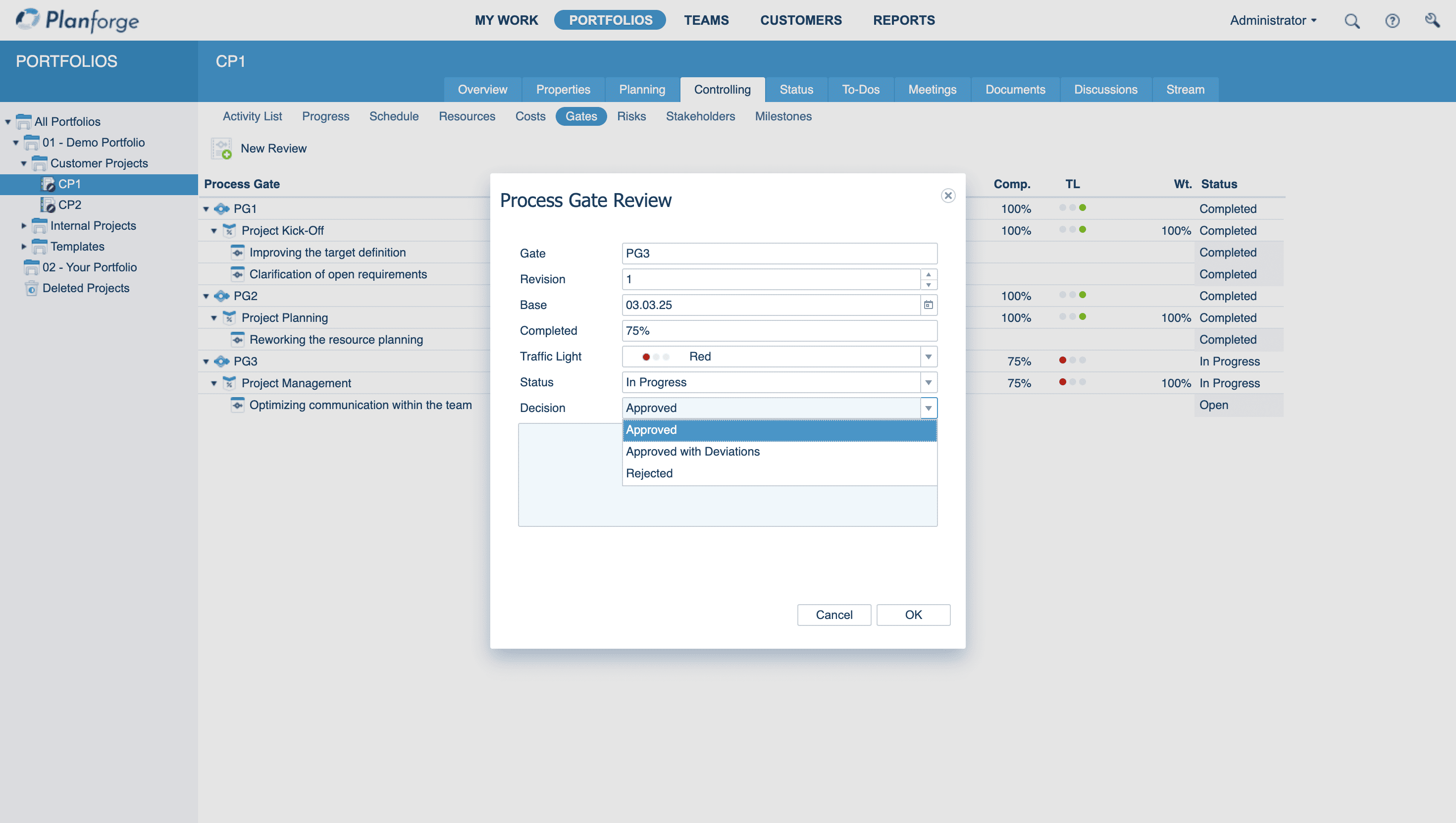 Planforge integrates a simple but powerful gate review process, enabling greater transparency and control.